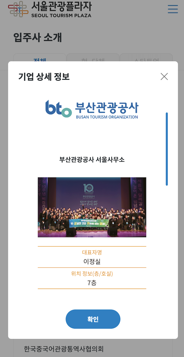 하나의 입주사를 누르면 모달 팝업이 떠서 입주사의 상세한 정보를 볼 수 있도록 제공합니다.