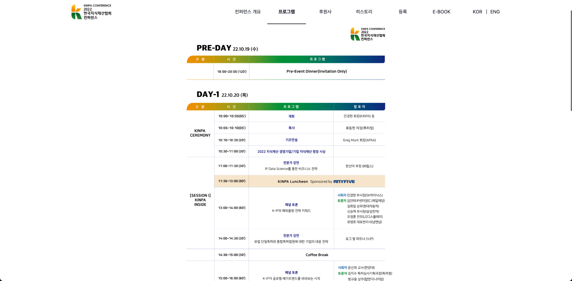 컨퍼런스 개요 초대글과, 프로그램 일정, 컨퍼런스 이미지를 확인할 수 있어서 행사를 한 눈에 이해하기 쉽도록 진행했습니다 :)